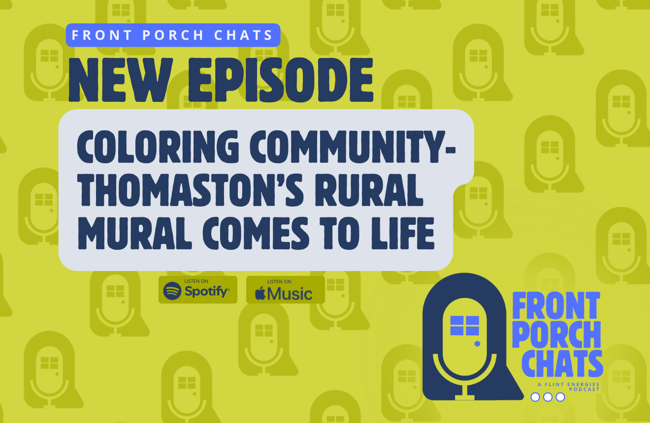 In the latest episode of Front Porch Chats, we spotlight one of Flint Energies’ Rural Murals projects in Thomaston and the meaningful partnership that helped bring it to life. Created in collaboration with the University of Georgia’s Color the World program, this mural blends student-led creativity with local pride, transforming a blank wall into a vibrant reflection of the community it represents.